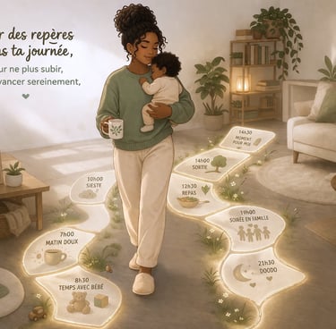 Dans cette étape, tu vas apprendre à installer des points d'ancrage simples dans ta journée, pour retrouver un rythme plus fluide avec ton bébé.