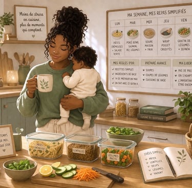 Dans cette étape, tu vas apprendre à simplifier l’organisation des repas, pour ne plus passer ton temps à chercher des idées ou improviser à la dernière minute.