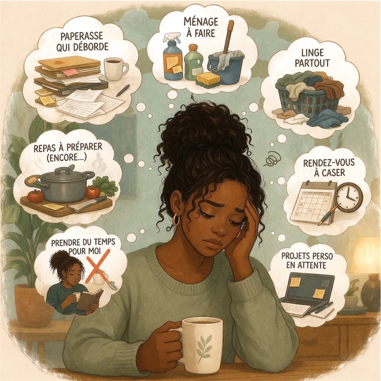 Dans cette étape, tu vas apprendre à revoir tes priorités à la maison, pour alléger la charge mentale liée au ménage et aux tâches du quotidien.